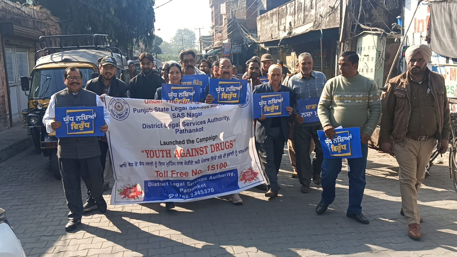 सुजानपुर । जिला कानूनी सेवाएं प्राधिकरण (DLSA), पठानकोट द्वारा ‘नशा मुक्त पंजाब’ बनाने के संकल्प के साथ ‘यूथ अगेंस्ट ड्रग्स’ अभियान के तहत सुजानपुर में एक जागरूकता रैली का आयोजन किया गया। यह रैली जिला एवं सत्र न्यायाधीश और DLSA के चेयरमैन जतिंदर पाल सिंह खुरमी तथा सीजेएम रुपिंदर सिंह के दिशा-निर्देशों पर आयोजित की गई।